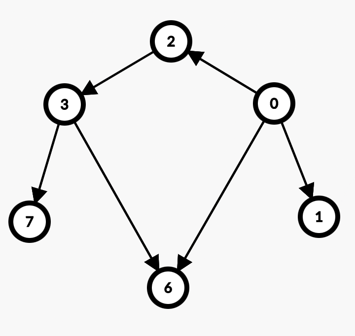 위 그림에서 간선 0->6의 방향을 바꾸면 사이클이 존재하게 된다.