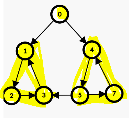 (0 번과 끊어지는 간선이 하나라도 있을경우 아래 그림처럼 별도의 scc로 묶여 있어야한다.)